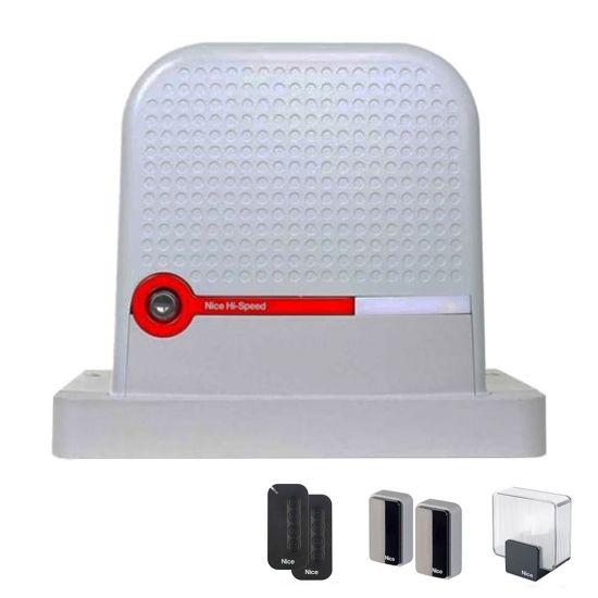 Kit-ul contine 1 motor Nice RBS600HS cu unitate de comanda si receptor incorporat, 2 telecomenzi, set de fotocelule si lampa de semnalizare.