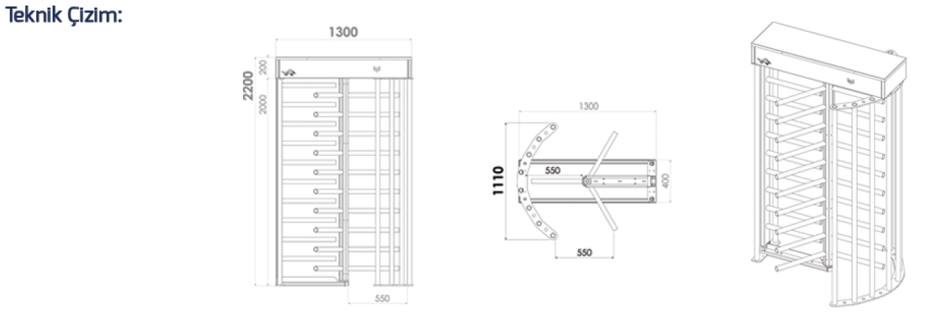 Circuitul electronic este produs ca tehnologie de montare la suprafață (SMD), intrările de control sunt contact uscat (NO). Intrările CMOS, TTL și 5 – 24VDC sunt disponibile ca opțiuni. Direcțiile de trecere pot fi setate ca liber sau controlat prin intermediul placii de control. Este utilizată sursa de alimentare în modul comutator, care oferă posibilitatea de a lucra între 100 și 230V AC. Sistemul funcționează la 24VDC. Temperatura de funcționare este între -10 °C și +50 °C. În medii foarte reci poate fi instalat un încălzitor. Poate da un avertisment sonor în cadrul aprobării unei treceri. Toate electronicele sunt păstrate într-o cutie ABS și sunt păstrate în standardele IP 67.