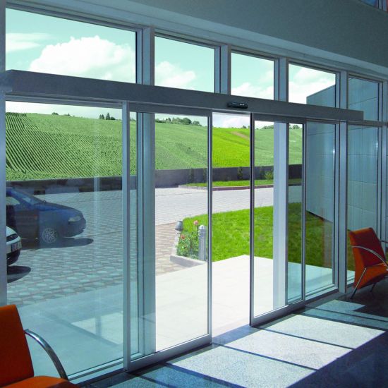Usa automata glisanta Dormakaba ES200 Easy pentru gol 1600 x 2200 mm, 2 foi mobile, 85 Kg pe foaie, rame fine ST FLEX