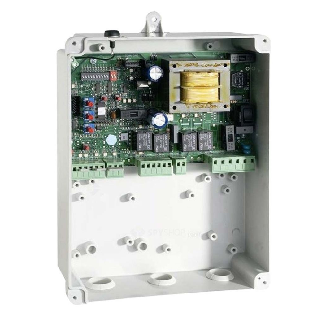 Kit-ul contine 2 motoare cu brate articulate, centrala de comanda, receptor radio, 2 telecomenzi si un set de fotocelule.