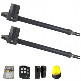 Kit automatizari porti batante 2x2m, format din unitate de control, doua actuatoare 230VAC, lampa semnalizare, set fotocelule, doua telecomenzi si antena. Greutate maxima poarta 350kg.