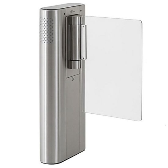Modul transmitator poarta acces cu latime de 450 mm, usi bidirectionale, structura armata pentru fixarea pe podea, pictograma pentru operare si pictograma pentru orientare (ambele directii), semnal sonor pentru acces permis/respins, integrare usoara cu controllere si cititoare de proximitate. Pentru un sistem cu o cale de acces, sunt necesare un modul receptor + un modul transmitator / modul terminator.