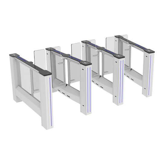 - Aripile electromecanice motorizate sunt închise în stand-by. Persoana solicită autorizare de la dispozitivul de control acces (dispozitiv terță parte) conectat la sistemul de intrare al porții. După autorizare, aripile se deschid, trecerea persoanei este monitorizată de multi-senzori de-a lungul pasajului, iar aripile se închid la finalizarea trecerii. În cazul unor autorizații de acces ulterioare, aripile rămân deschise până când ultima persoană își finalizează trecerea și apoi se închid.