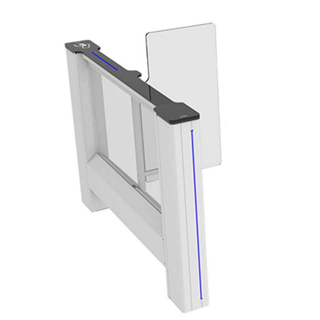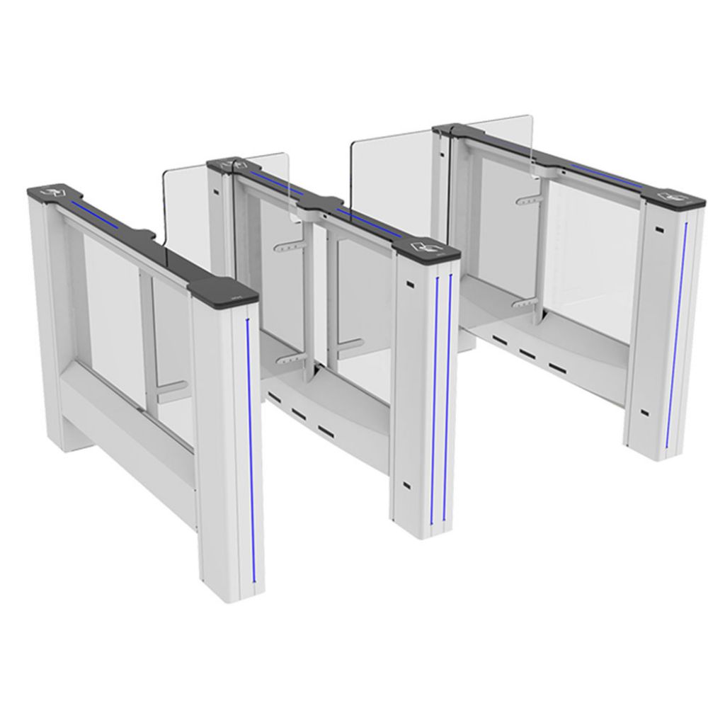 - Aripile electromecanice motorizate sunt închise în stand-by. Persoana solicită autorizare de la dispozitivul de control acces (dispozitiv terță parte) conectat la sistemul de intrare al porții. După autorizare, aripile se deschid, trecerea persoanei este monitorizată de multi-senzori de-a lungul pasajului, iar aripile se închid la finalizarea trecerii. În cazul unor autorizații de acces ulterioare, aripile rămân deschise până când ultima persoană își finalizează trecerea și apoi se închid.