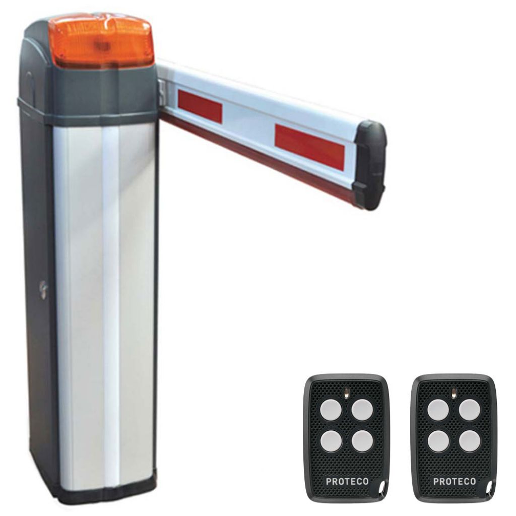 Proteco Barry model Barry DC DX este o bariera automata cu brat de 3.6 - 6 metri telescopic, acest kit este format din bariera si 2 telecomenzi.