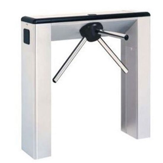 Turnichet electromecanic bidirectional din otel inoxidabil, varianta cu cadru in U, pentru trafic foarte intens. Are 3 brate din otel inoxidabil cu unghi de 90 grade care permit trecerea persoanelor cu impact redus asupra acestora.