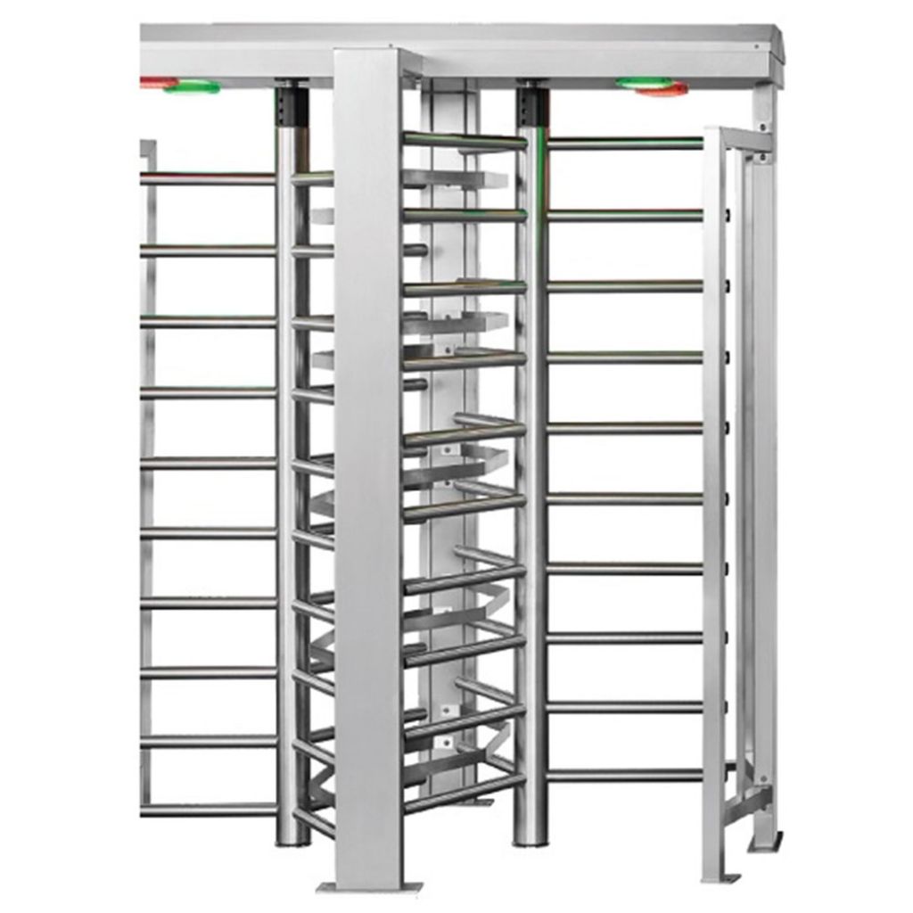 Turnichet bidirecțional electromecanic din oțel galvanizat (RAL 9006) de tip full-height cu două pasaje, rotor cu 3 segmente, unitate control inclusă