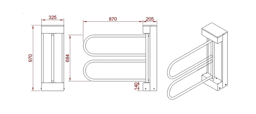 Acest turnichet are aripa de 850 mm.