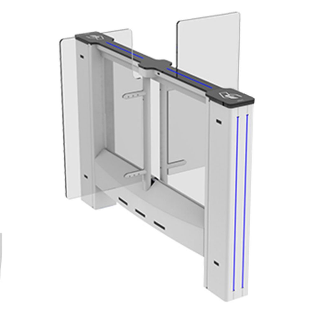 - Aripile electromecanice motorizate sunt închise în stand-by. Persoana solicită autorizare de la dispozitivul de control acces (dispozitiv terță parte) conectat la sistemul de intrare al porții. După autorizare, aripile se deschid, trecerea persoanei este monitorizată de multi-senzori de-a lungul pasajului, iar aripile se închid la finalizarea trecerii. În cazul unor autorizații de acces ulterioare, aripile rămân deschise până când ultima persoană își finalizează trecerea și apoi se închid.