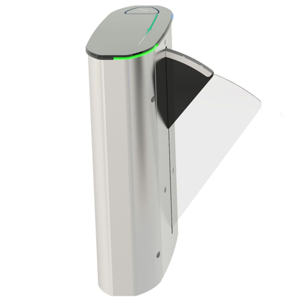 - Aripile electromecanice motorizate sunt închise în stand-by (opt. deschise). Persoana solicită autorizare de la dispozitivul de control acces (dispozitiv terță parte) conectat la sistemul de intrare al porții. După autorizare, aripile se deschid, trecerea persoanei este monitorizată de multisenzori de-a lungul pasajului și aripile se închid la finalizarea trecerii. În cazul unor autorizații de acces ulterioare, aripile rămân deschise până când ultima persoană își finalizează trecerea și apoi se închid.