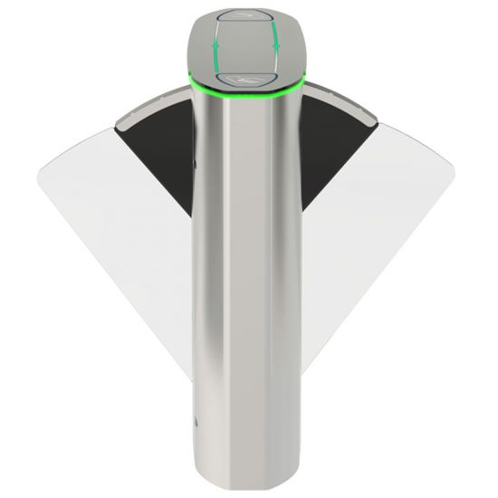 - Aripile electromecanice motorizate sunt închise în stand-by (opt. deschise). Persoana solicită autorizare de la dispozitivul de control acces (dispozitiv terță parte) conectat la sistemul de intrare al porții. După autorizare, aripile se deschid, trecerea persoanei este monitorizată de multisenzori de-a lungul pasajului și aripile se închid la finalizarea trecerii. În cazul unor autorizații de acces ulterioare, aripile rămân deschise până când ultima persoană își finalizează trecerea și apoi se închid.