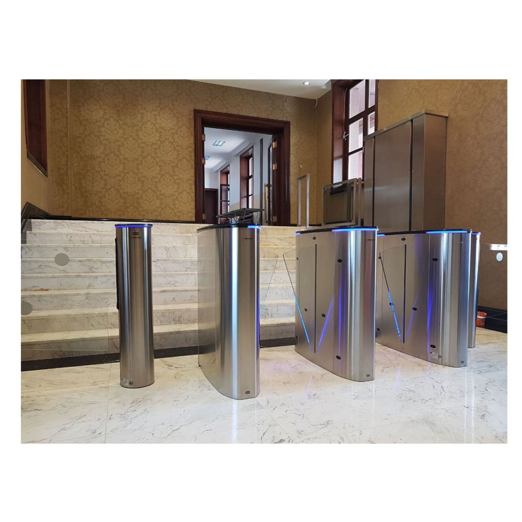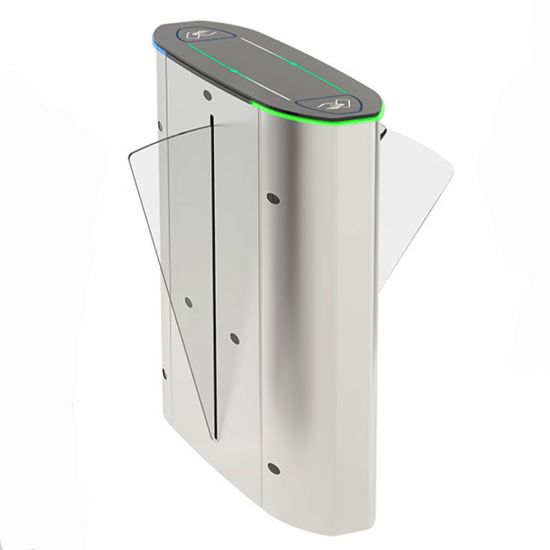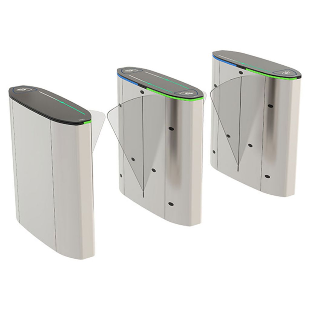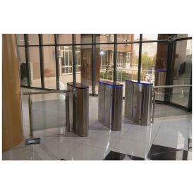 - Aripile electromecanice motorizate sunt închise în stand-by (opt. deschise). Persoana solicită autorizare de la dispozitivul de control acces (dispozitiv terță parte) conectat la sistemul de intrare al porții. După autorizare, aripile se deschid, trecerea persoanei este monitorizată de multisenzori de-a lungul pasajului și aripile se închid la finalizarea trecerii. În cazul unor autorizații de acces ulterioare, aripile rămân deschise până când ultima persoană își finalizează trecerea și apoi se închid.