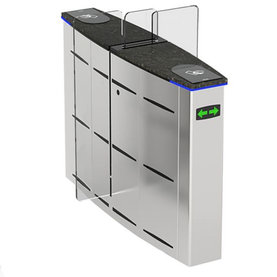 - Aripile electromecanice motorizate sunt închise în stand-by (opt. deschise). Persoana solicită autorizare de la dispozitivul de control acces (dispozitiv terță parte) conectat la sistemul de intrare al porții. După autorizare, aripile se deschid, trecerea persoanei este monitorizată de multisenzori de-a lungul pasajului și aripile se închid la finalizarea trecerii. În cazul unor autorizații de acces ulterioare, aripile rămân deschise până când ultima persoană își finalizează trecerea și apoi se închid.