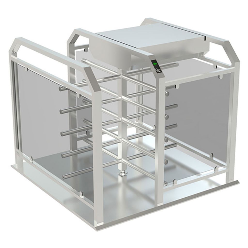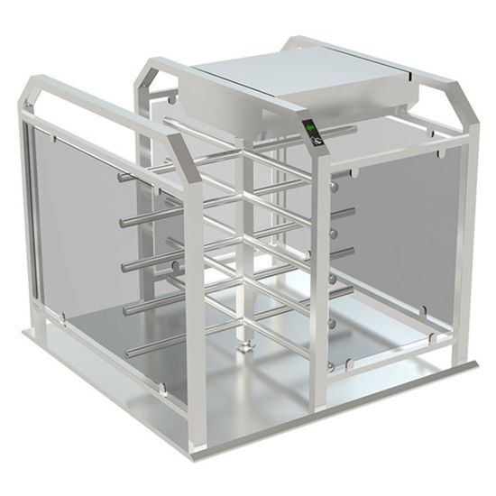 Turnichet semi-vertical cu 4 brate proiectat pentru locații care vizează un nivel de securitate mai ridicat decât turnichetele tripod.