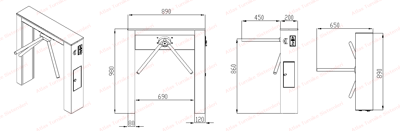 Turnichetul Atlas CRB 200sJR este construit din inox.