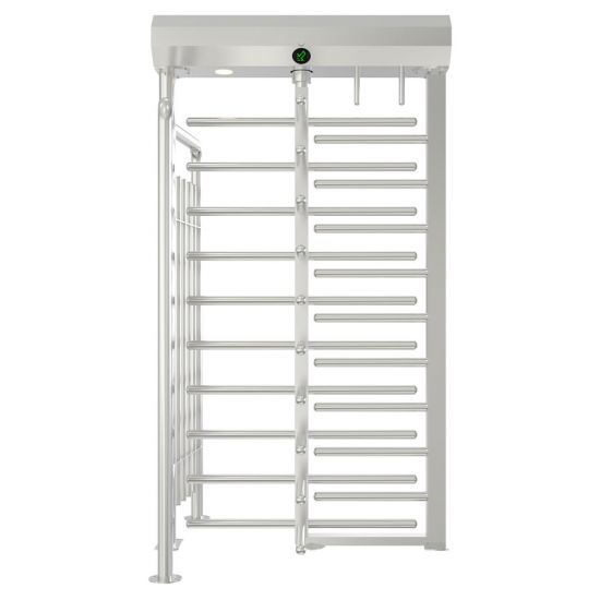 Turnichet vertical cu functionare electromecanica manuala utilizat pentru controlul accesului pietonilor si securitate la nivel inalt.