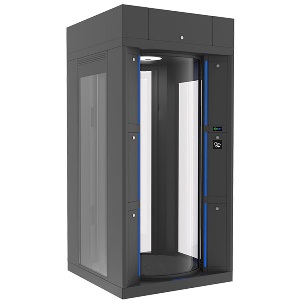La ambele usi in pozitie inchisa, senzorii de greutate si prezenta controleaza inca o data prezenta persoanei din interior. A doua usa se deschide in cazul in care exista o persoana in interior si daca aceasta este autorizata pentru acces (in caz contrar, a doua usa nu se deschide niciodata, poarta intoarce persoana in directia de intrare sau tine persoana incuiata inauntru).